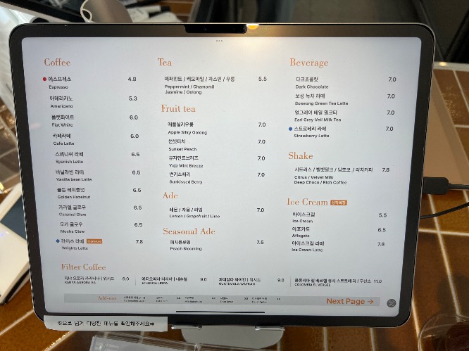 그리고 음료 메뉴는 요렇습니다.